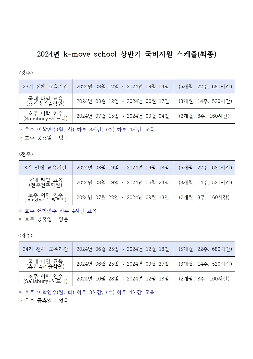2024 호주타일 국비지원 해외취업 과정 상반기 개강 일정